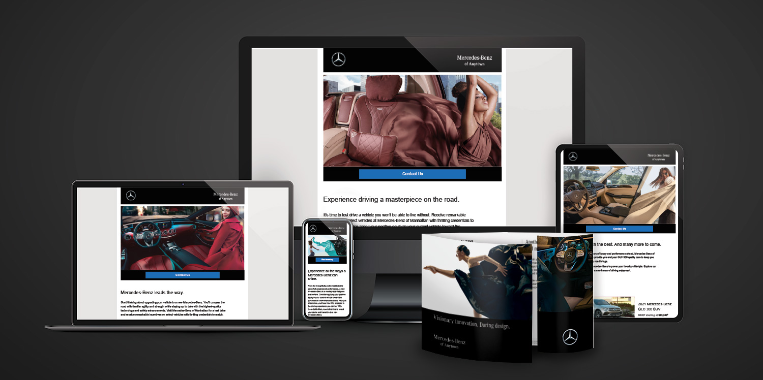 In the Sales Journey campaign, I developed kinetic composite imagery to highlight the luxury and versatility of the Mercedes-Benz brand. Designed as part of an ongoing, targeted communications series, each piece connects the diversity of the vehicle lineup with the distinct lifestyles of its buyers. The dynamic visuals integrate with an asymmetrical gate fold direct mail format, increasing memorability while reinforcing a bold, premium brand identity.